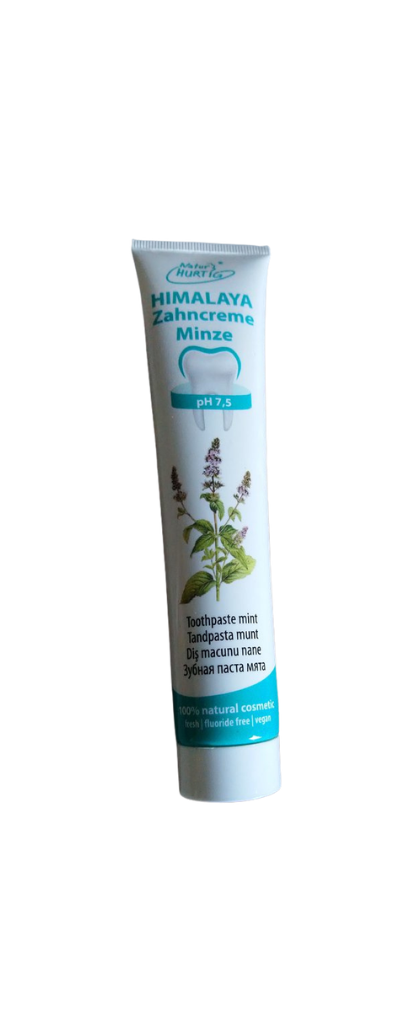 Die Himalaya-Zahncreme von Natur Hurtig sorgt für eine gründliche Reinigung der Zähne und stärkt zugleich das Zahnfleisch. Ihre besondere Wirkung basiert auf der Kombination aus Himalaya-Salz* und sieben ausgewählten Heilpflanzen, unter anderem aus der Himalaya-Region. Das Himalaya-Salz ist reich an natürlichen Mineralstoffen, wirkt antibakteriell, fördert den Speichelfluss und unterstützt so die natürliche Selbstreinigung des Mundraums. Zusätzlich hilft das basische Mineralsalz Bicarbonat dabei, schädliche Säuren zu neutralisieren. *Himalaya-Salz stammt aus der Salt Range im Norden Pakistans. Angereichert mit ätherischen Ölen aus Rosmarin, Teebaum, Myrrhe und Thymian, die ebenfalls antibakteriell wirken, bietet die Zahncreme bei regelmäßiger Anwendung einen natürlichen Schutz vor Karies und Parodontose.