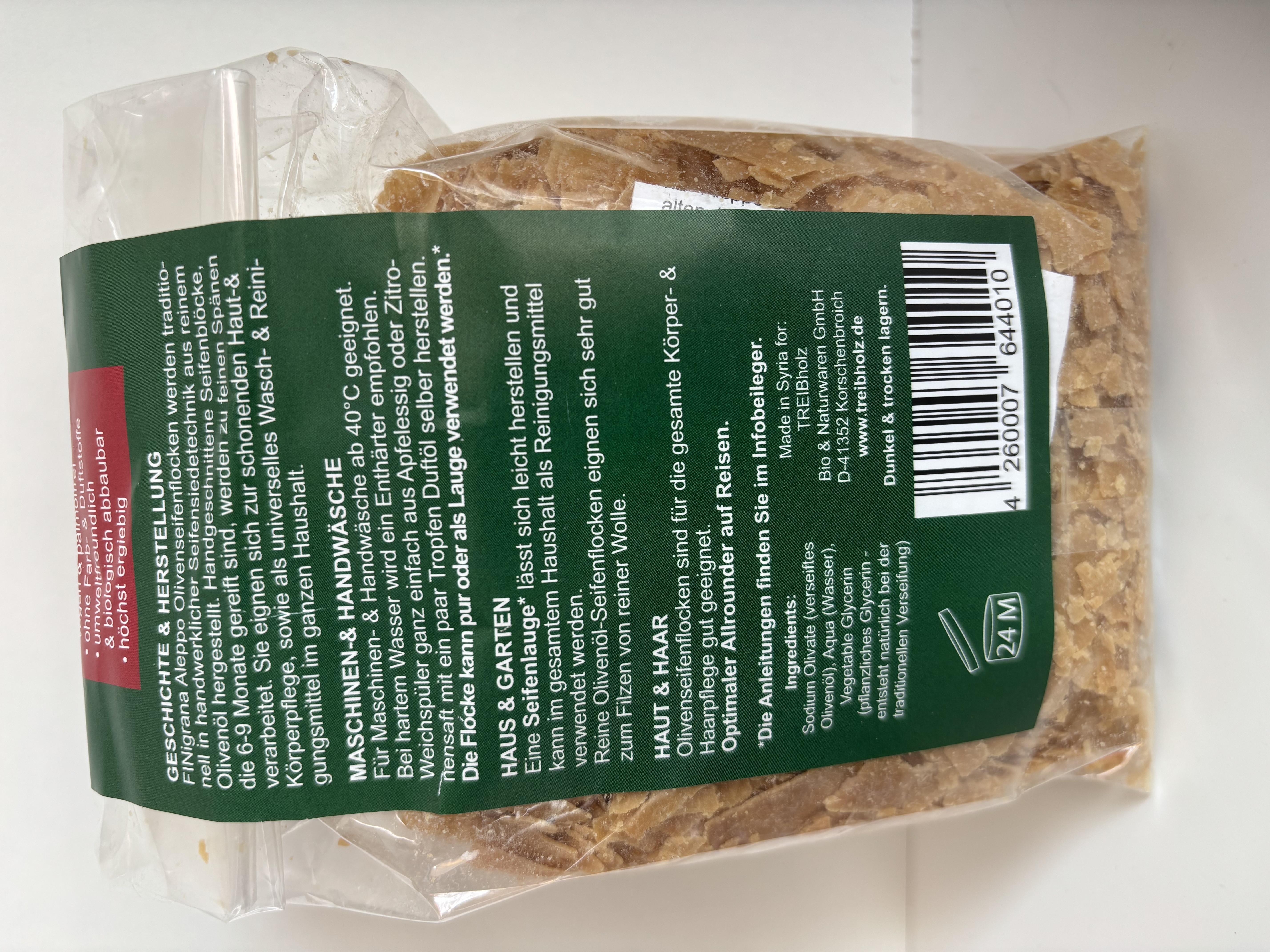 - Inhaltsstoffe: verseiftes Olivenöl, Wasser, pflanzliches Glycerin
